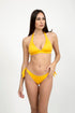 Smooth and stretchy fabric bikini swimsuit sets, comfortable and durable. Halter top paired with a scrunch bikini both with adjustable tie closures. Wash cold, hang dry.