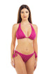 Smooth and stretchy fabric bikini swimsuit sets, comfortable and durable. Triangle Halter top paired with a scrunch bikini both with adjustable tie closures. Wash cold, hang dry