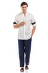 • Men's Contrast Linen Shirt Korean Collar & Full Buttons