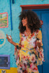 This ideal wrap cover-up is a summer essential ! With delicate flower pattern all over, suitable to wear over your swimsuit or pair with casual summer clothing as a flattering coat dress.