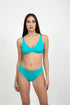 Set di costumi da bagno bikini in tessuto liscio ed elasticizzato, comodi e resistenti.  La scollatura profonda è accompagnata da un'ampia fascia inferiore con chiusure a laccio e abbinata a un bikini scrunch.  Lavare in acqua fredda, appendere ad asciugare.