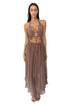 This Sexy Hollow Out V-Neck Chiffon Long Maxi Dress in beige offers a daring V-neck and hollow cut-outs, creating an elegant yet edgy silhouette for evening wear or special occasions.